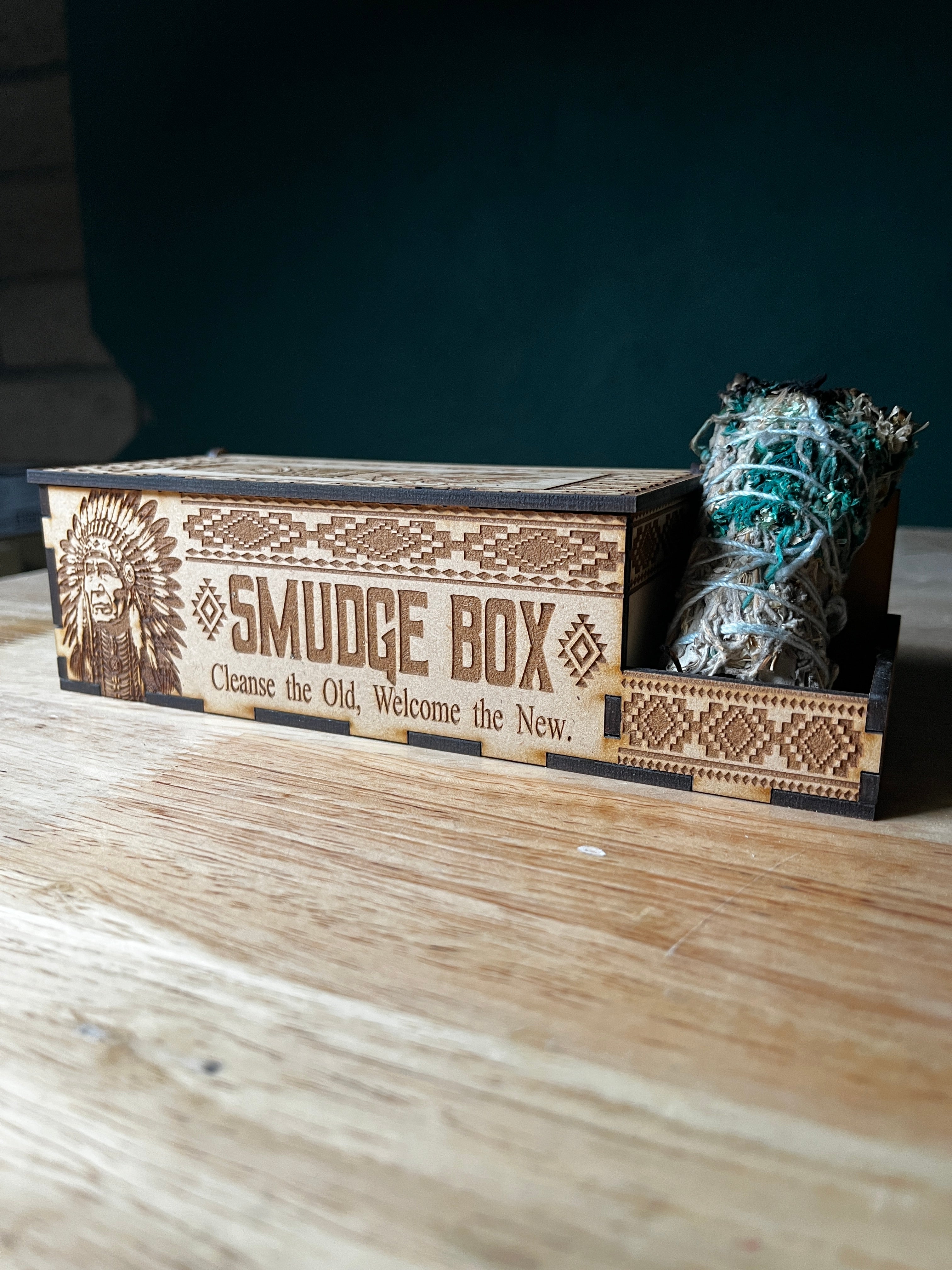 Connect with tradition and purify your space with our handcrafted Native American Smudge Box. Each box includes: